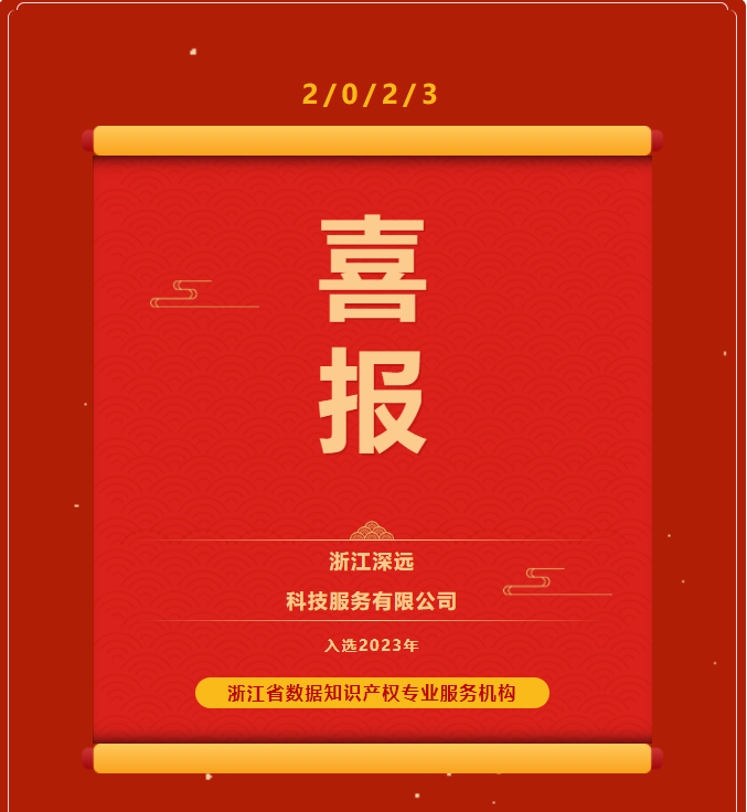 - 喜報丨熱烈祝賀我司入選浙江省數(shù)據(jù)知識產(chǎn)權(quán)專業(yè)服務(wù)機構(gòu)!